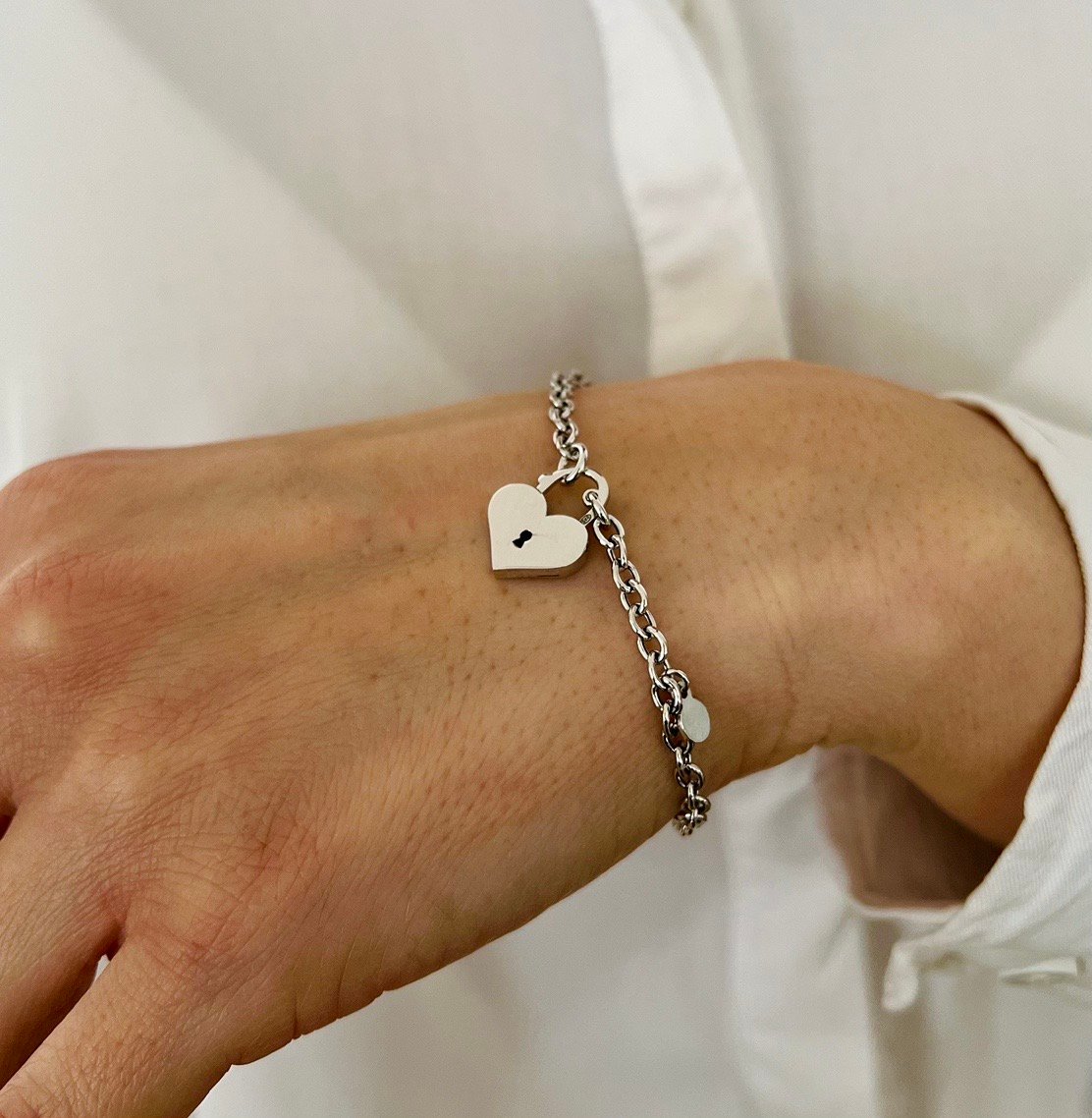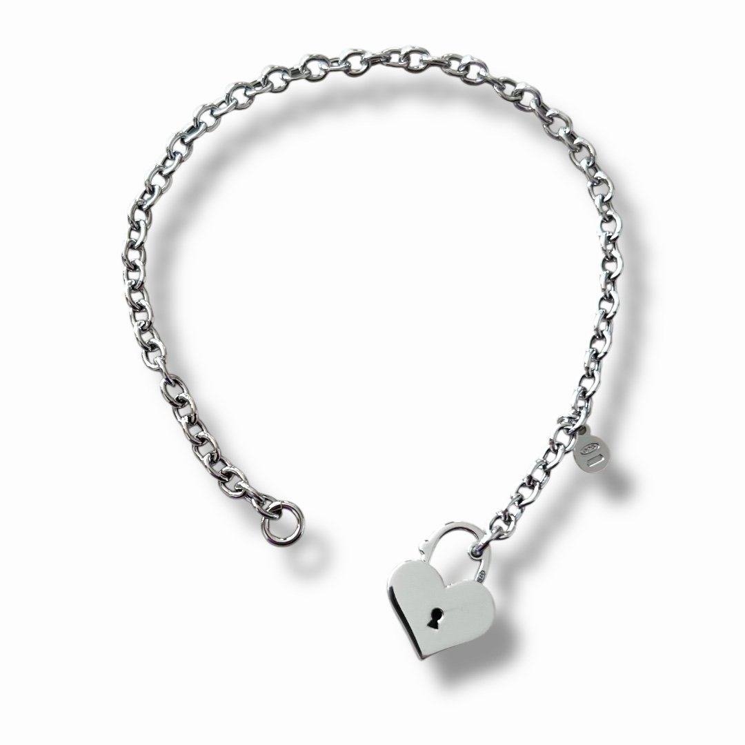 Гривната Heart Lock Elegance е стилен модел от сребро проба 925, вдъхновен от символиката на катинарчето във форма на сърце – знак за любов, доверие и споделена връзка. Масивната верижка придава модерно излъчване и характер, докато централният елемент добавя романтичен и емоционален акцент.