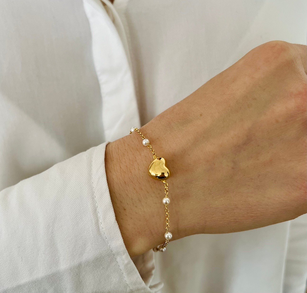 Гривната Golden Heart Whisper е нежно и изискано бижу от сребро проба 925 със златисто покритие, създадено да носи послание за любов и внимание. Деликатната верижка е подчертана от елегантно сърце с гладък, огледален завършек, което улавя светлината с топъл и мек блясък.
