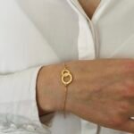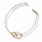 Гривната Golden Unity Circles е елегантен модел от сребро проба 925 със златисто покритие, вдъхновен от символиката на преплетените кръгове – знак за връзка, баланс и безкрайност. Двата фино съединени елемента създават усещане за хармония и стилна завършеност.