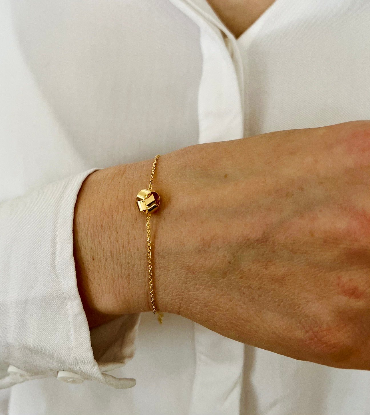 Гривната Golden Gift Charm е елегантен модел от сребро проба 925 със златисто покритие, вдъхновен от формата на малко изискано подаръче – символ на внимание, обич и специален жест. Централният елемент създава усещане за нежна игривост, съчетана с луксозно и модерно излъчване.