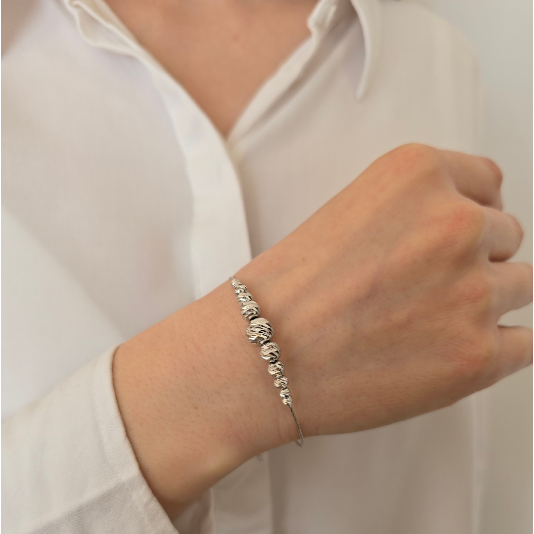 Гривната Silver Textured Symphony е изискан модел от сребро проба 925, отличаващ се с хармонична композиция от сферични елементи с фина текстура. Различните размери създават плавен визуален ритъм, който придава дълбочина и елегантна динамика на дизайна.