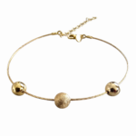 Гривната Golden Trio Sphere е изискан модел от сребро проба 925 със златисто покритие, съчетаващ минималистична линия и елегантна композиция от три сферични акцента. Контрастът между гладките огледални топчета и централната текстурирана сфера създава фина игра на светлина и изтънчен визуален ритъм.