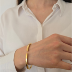 Гладката, огледална повърхност отразява светлината с топъл и благороден блясък, подчертавайки елегантността на китката. Прецизната изработка гарантира комфорт при носене и безупречен завършек, който излъчва премиум качество и стил.