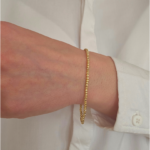 Комбинацията от гладки и текстурирани топчета създава красива игра на светлина, която подчертава топлия златист блясък на метала. Изчистеният дизайн прави гривната универсален аксесоар, който се комбинира лесно както с ежедневна, така и с елегантна визия.