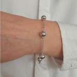 Гривната Silver Sphere Grace е елегантен модел от сребро проба 925, съчетаващ минималистичен дизайн и изискан блясък. Декоративните сферични елементи са разположени върху фина верижка и създават хармонична композиция, която придава на бижуто стилно и модерно излъчване.