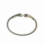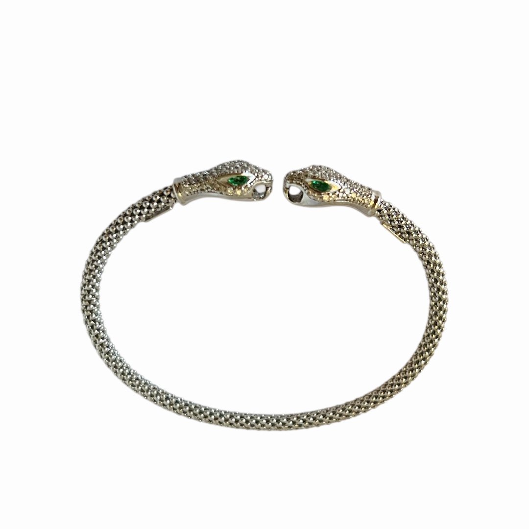 Гривната Serpente Imperiale, изработена от сребро проба 925, е дръзко бижу с изразена символика и безупречна италианска изработка. Двете фино моделирани змийски глави с инкрустирани цирконии и изразителни зелени очи се срещат в елегантен баланс, създавайки усещане за сила, защита и мистична енергия.