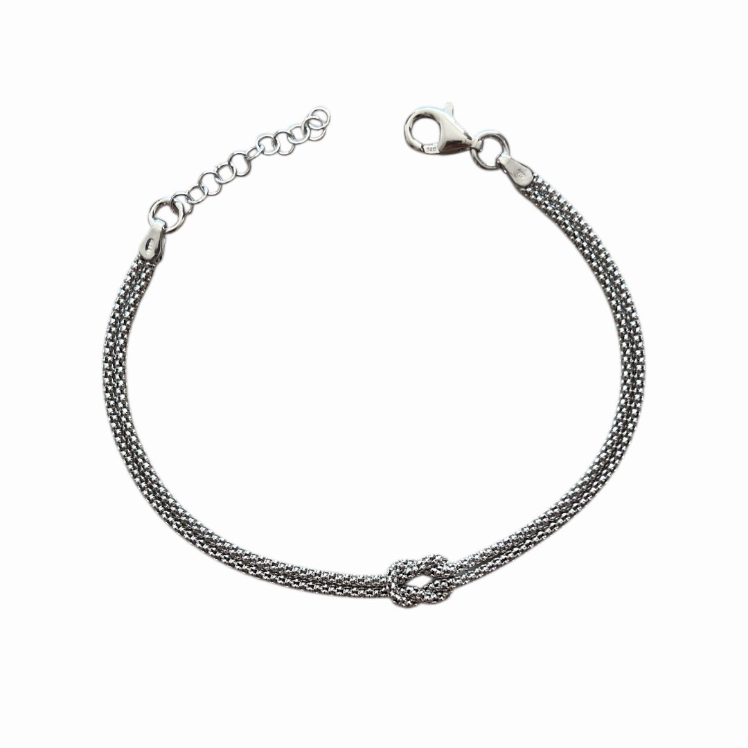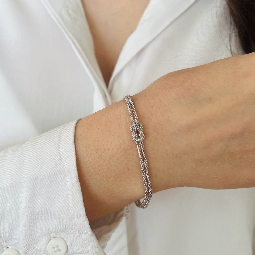 Гривната Eternal Knot, изработена от сребро проба 925, е изящен символ на свързаност, вярност и безкрайност. Фината двойна плетка придава плътност и мек блясък, а централният възел добавя деликатен акцент с дълбока символика.