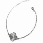Гривната Soleil Clover, изработена от сребро проба 925, впечатлява с артистичен дизайн и изтънчена символика. Централният елемент във формата на четирилистно цвете е изработен с радиална текстура, която създава ефект на слънчеви лъчи и придава динамичен, жив блясък.
