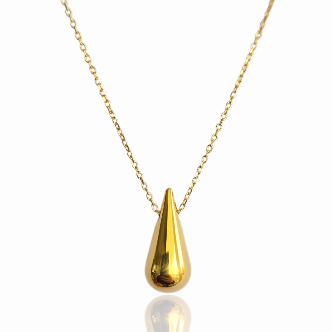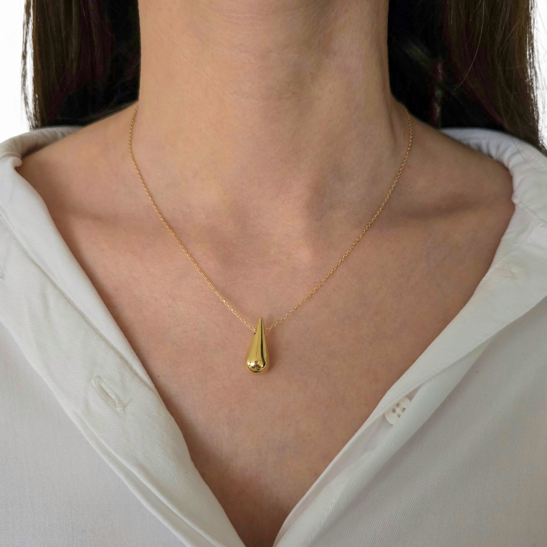 Луксозно колие Milano Drop, изработено от сребро проба 925 със златисто покритие, впечатлява със своята изчистена скулптурна форма. Капковидният медальон с огледален финиш отразява светлината с интензивен, но елегантен блясък, създавайки усещане за движение и изтънченост.
