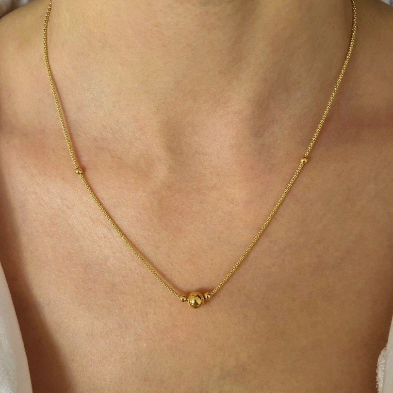Нежно колие със златисто покритие и елегантен сферичен акцент.