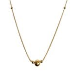 Колие Golden Sphere Accent е изработено от висококачествено сребро проба 925 със златисто покритие, което придава топъл, наситен блясък и усещане за фин лукс. Дизайнът е изчистен и балансиран – деликатна верижка, допълнена от централна огледално полирана сфера и фини странични детайли.