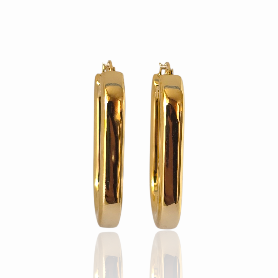 Луксозни италиански обеци с елегантна овална форма и перфектно огледално покритие. Повърхността отразява светлината ,създавайки отчетлив блясък.