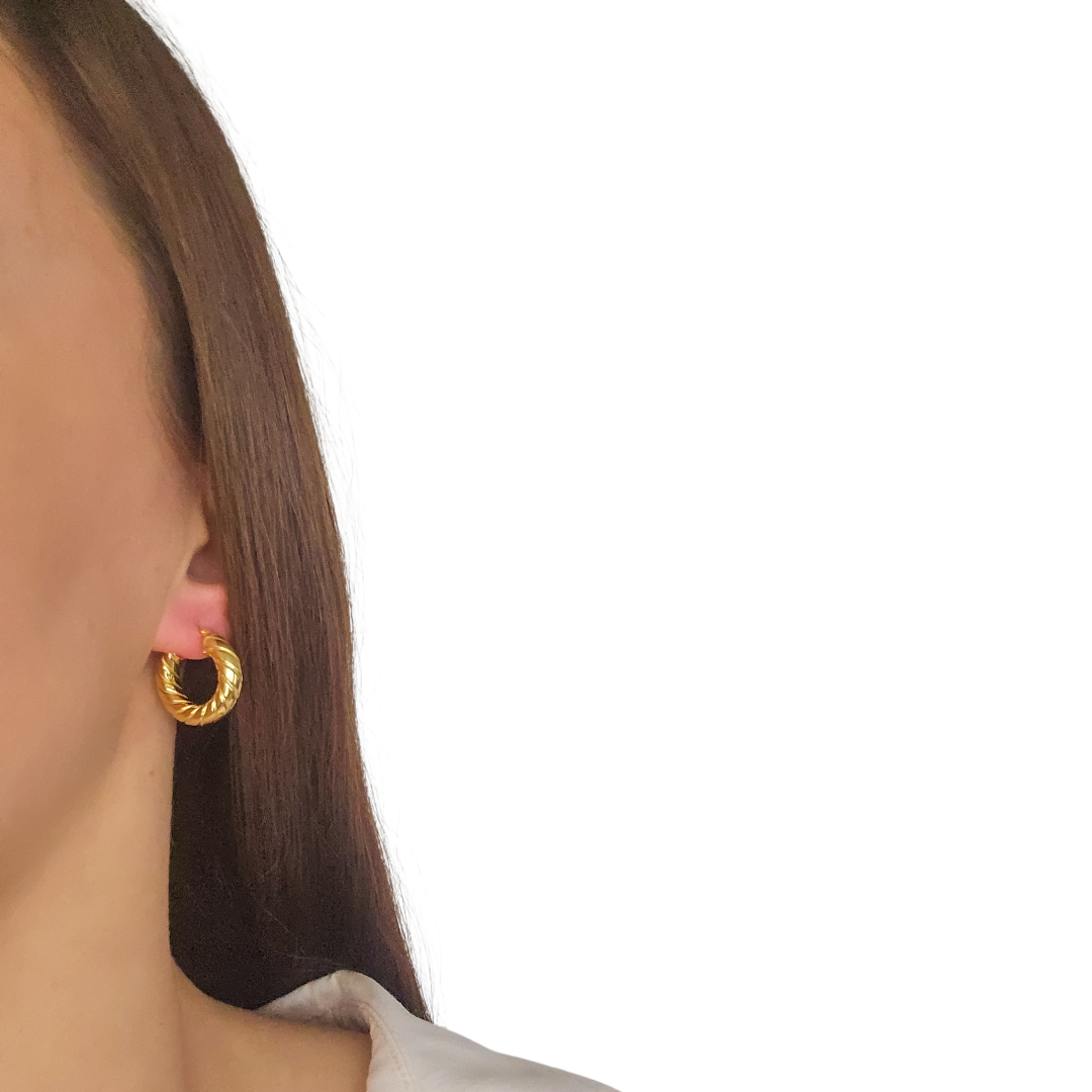Елегантни халки със златисто покритие и усукан релефен дизайн.