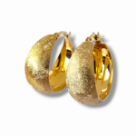 Обеци Golden Velvet Hoops са изработени от висококачествено сребро проба 925 със златисто покритие, което придава дълбок, топъл блясък и усещане за истински лукс. Външната част е със специална сатенено-матова текстура, която създава фин „пясъчен“ ефект и изключително стилно присъствие.