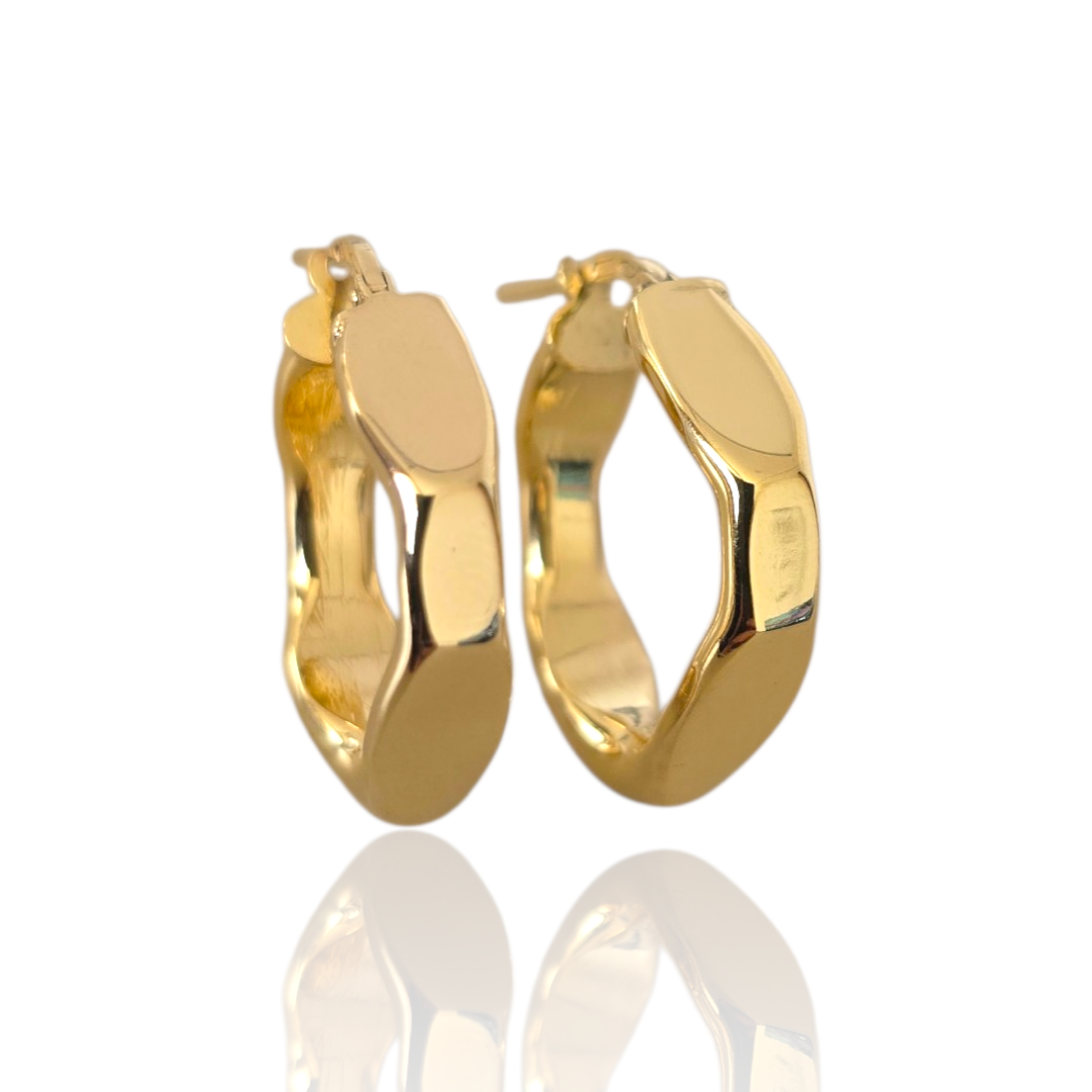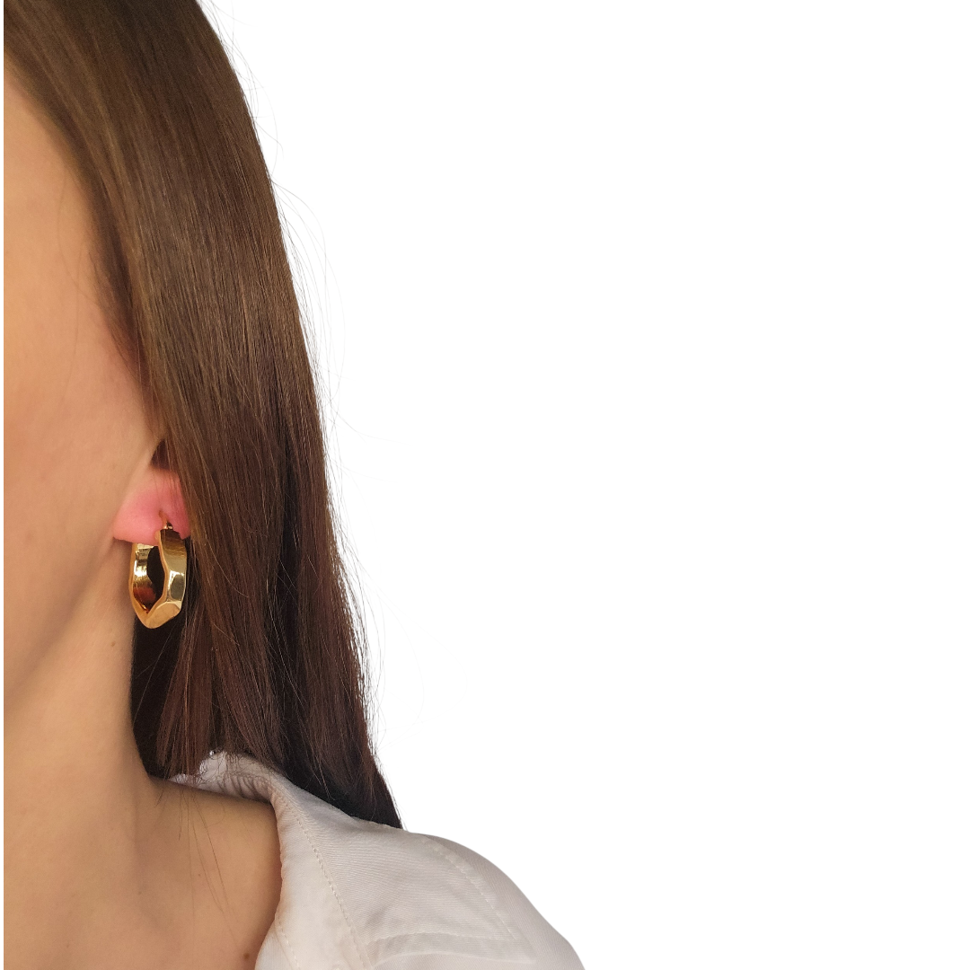 Геометричните извивки придават характер и съвременно излъчване, като същевременно запазват класическата елегантност на халките. Моделът е балансиран, стилен и удобен за носене през целия ден.