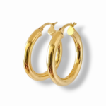 Обеците Golden Bold Hoop са впечатляващ модел от сребро проба 925 със златисто покритие, съчетаващ класическа форма и модерно, плътно излъчване. Гладката, огледална повърхност отразява светлината с топъл и благороден блясък, придавайки на бижуто изразителен и луксозен характер.