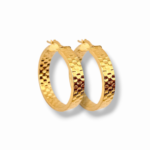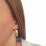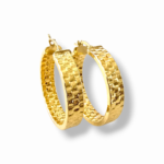 Обеците Golden Hammered Hoop са изискан модел от сребро проба 925 със златисто покритие, отличаващ се с характерна релефна текстура, вдъхновена от техниката „hammered“ ефект. Фасетираната повърхност създава динамична игра на светлина и придава на бижуто богат и луксозен блясък.