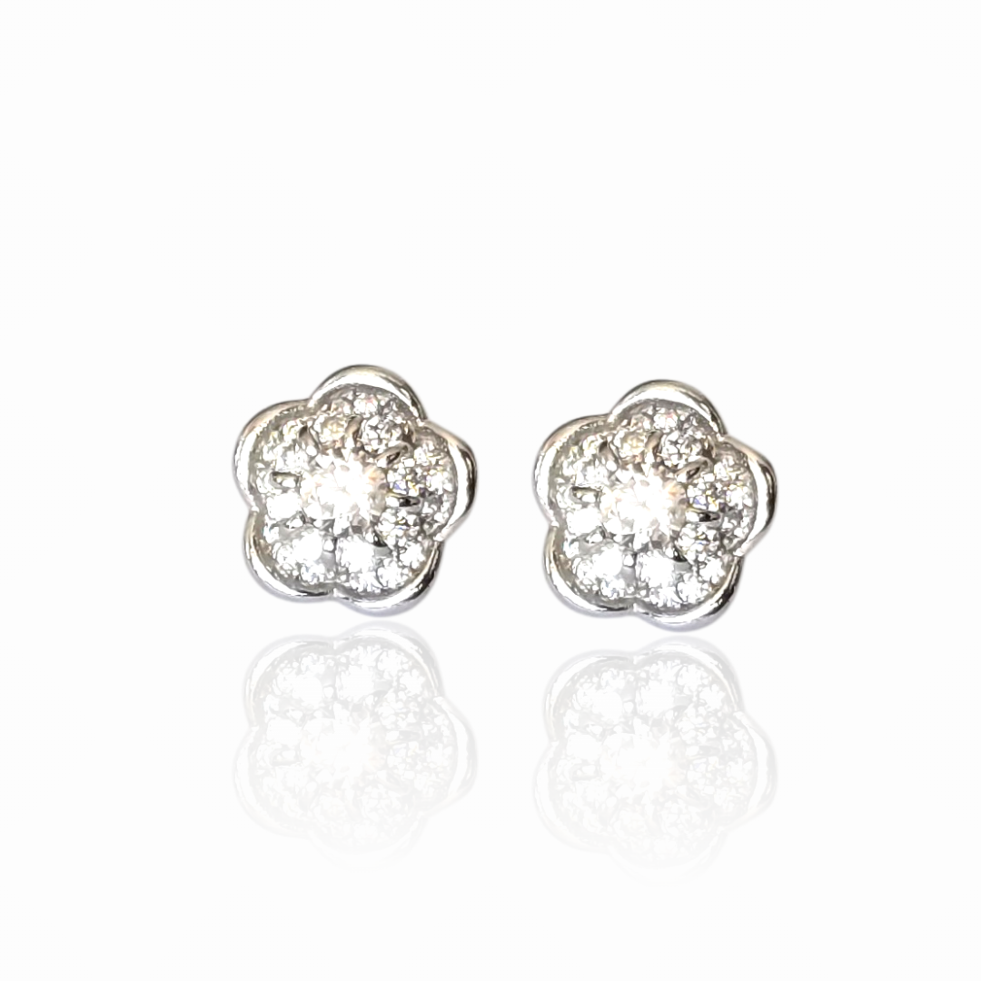 Обеците Silver Flower Glow са изящно бижу от сребро проба 925 с нежна флорална форма и наситен блясък. Композицията от цирконии оформя сияйно цвете, което улавя светлината и създава ефект на меко, равномерно сияние.