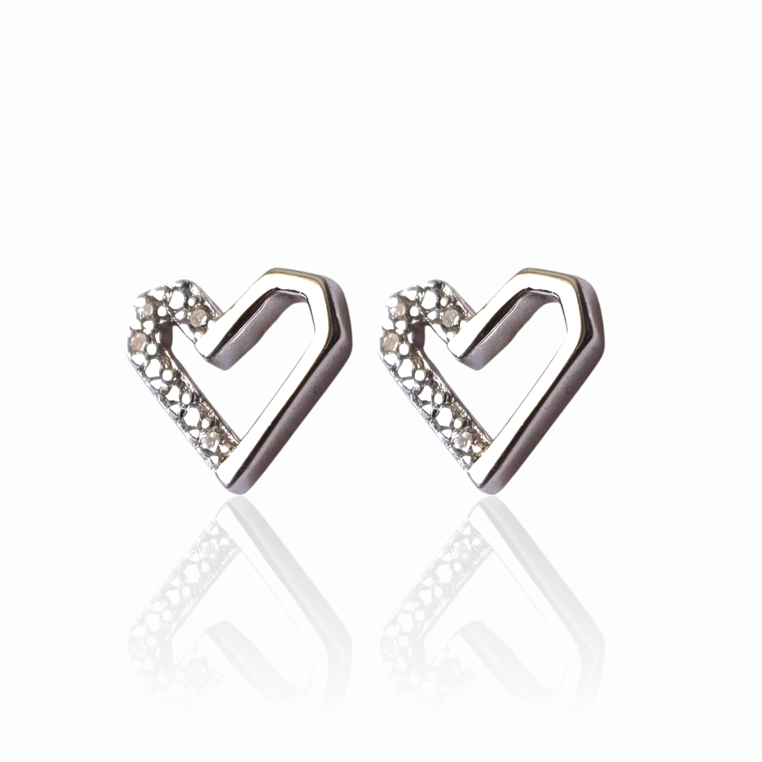 Обеците Silver Heart Line са елегантно бижу от сребро проба 925 с модерен и изчистен дизайн. Формата на сърце е интерпретирана чрез плавна линия, комбинираща полирана повърхност и деликатна инкрустация от цирконии, които придават фин и изискан блясък.