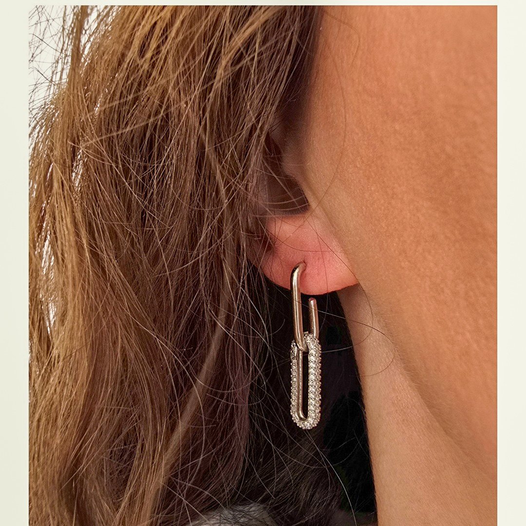 Елегантни висящи обеци .Нежни и стилни .Горната част е изчистено сребро ,а долната е покрита цялата с цирконии .