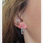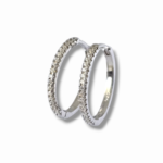 Сребърни обеци тип халки. Предната страна е с цирконии, а задната част е изчистено сребро.