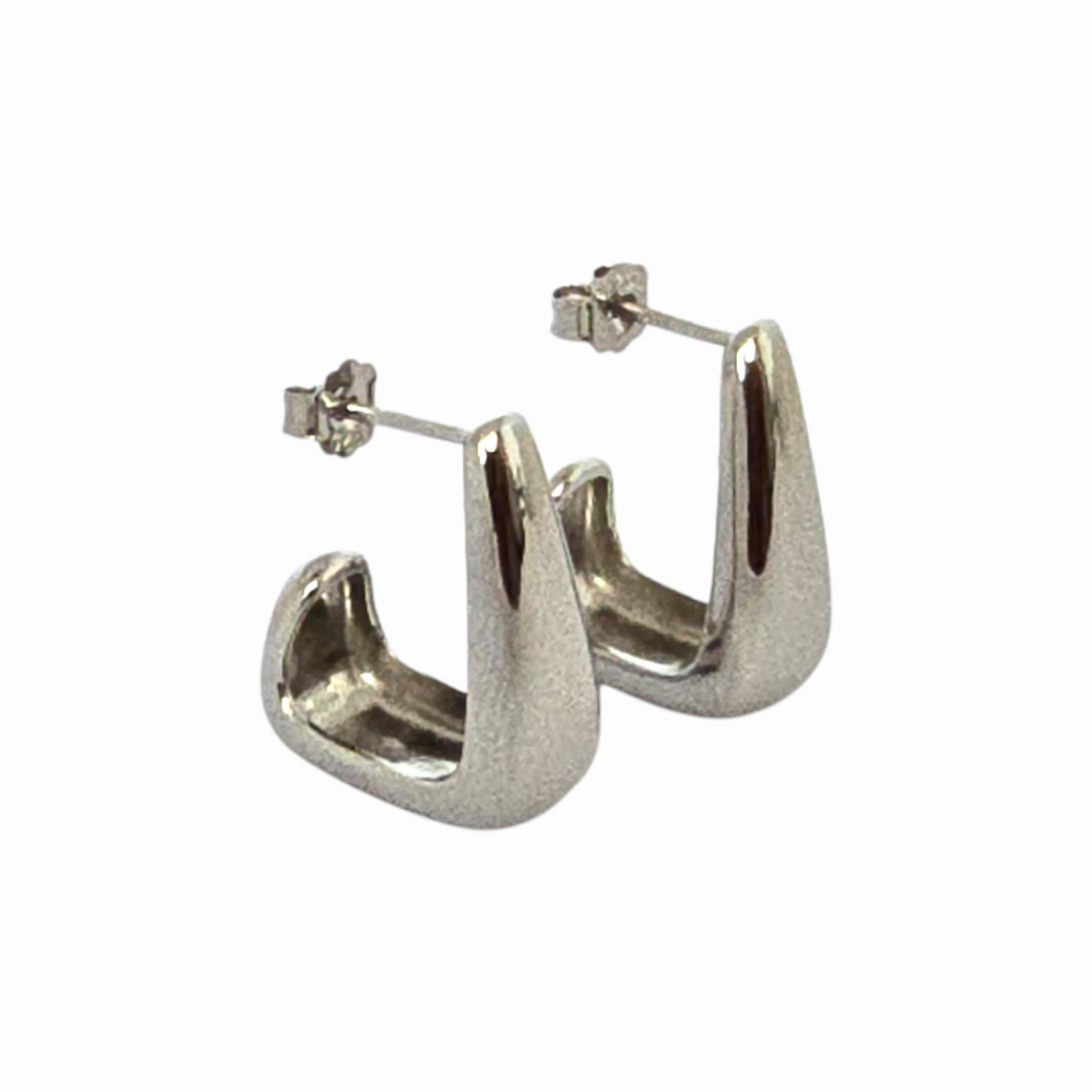 Обеци Urban Angle Silver се отличават с изчистена геометрична линия и леко ъгловат силует, който придава съвременно и стилно излъчване. Меката вътрешна извивка балансира формата и създава елегантен контраст между прави линии и плавни контури. Изработени са от сребро проба 925 и са със закопчаване тип щифт, което осигурява стабилност и комфорт при носене. Минималистичният дизайн ги прави универсален акцент както към ежедневни, така и към по-елегантни визии.