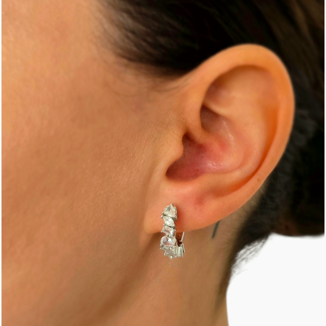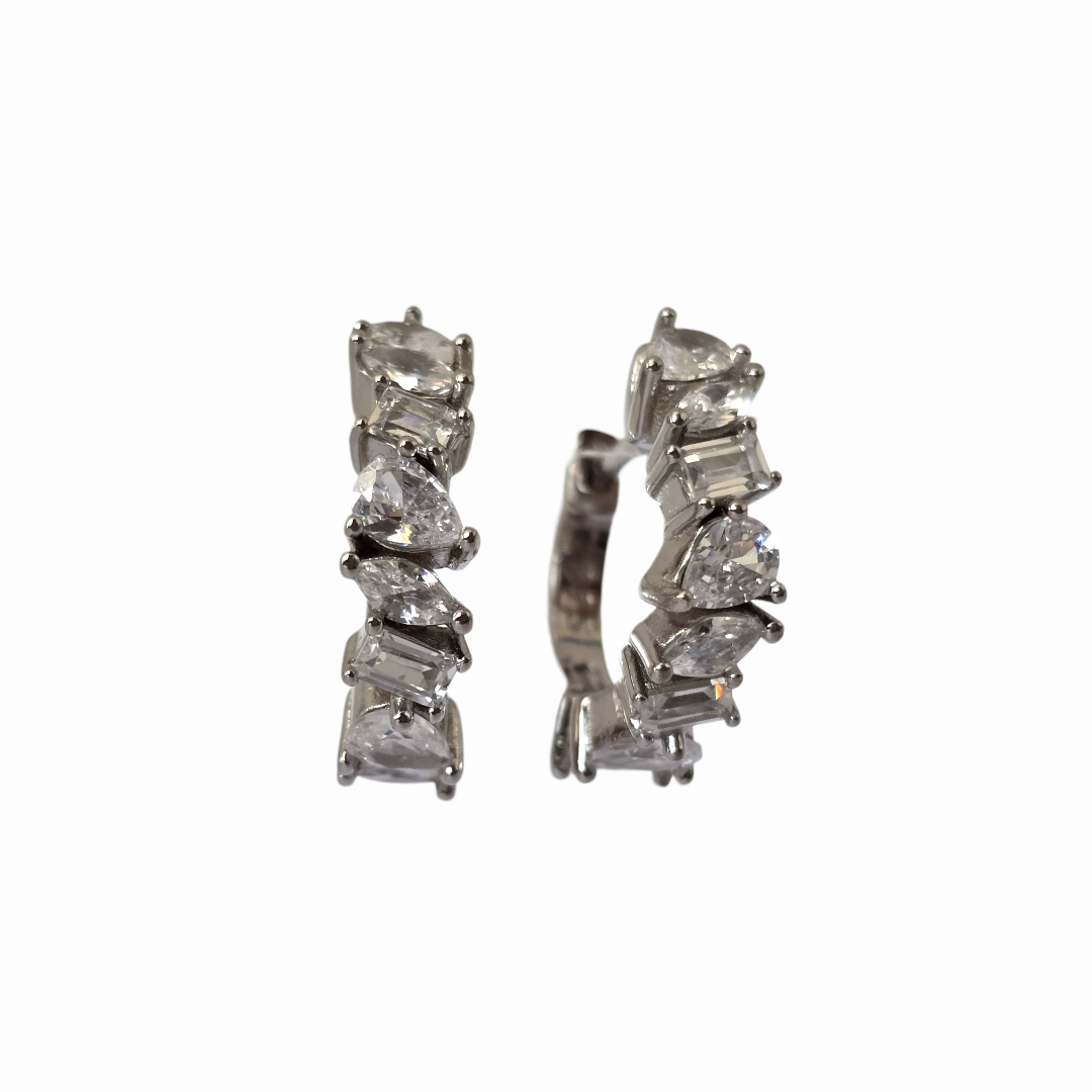 Обеци Royal Crystal Hoops впечатляват с богата композиция от различно оформени цирконии, подредени по цялата предна част на халката за максимален блясък и изискан ефект. Комбинацията от форми създава динамика и дълбочина, а сиянието на камъните придава истинско усещане за лукс. Изработени са от сребро проба 925 и са с английско закопчаване, което осигурява сигурност и удобство при носене. Елегантният дизайн ги прави перфектен избор за вечерни визии, официални събития и специални поводи.